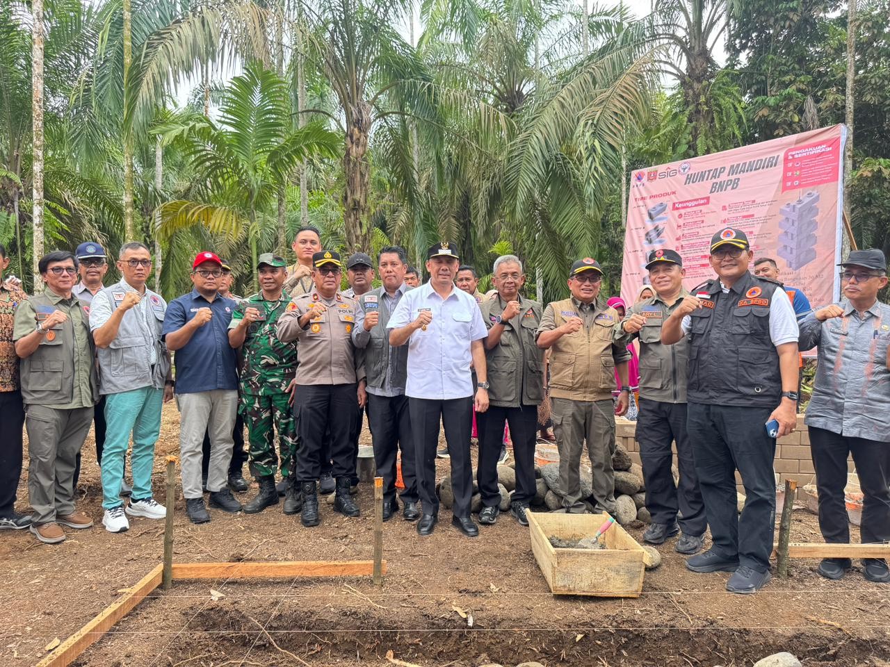 Pembangunan huntap mandiri di Kabupaten Limapuluh Kota dimulai di Jorong Lubuk Aur, Nagari Koto Tinggi, Kecamatan Gunuang Omeh, Rabu (15/4/2026). Kegiatan tersebut ditandai dengan peletakan batu pertama oleh Sekretaris Utama BNPB, Rustian, bersama Bupati Limapuluh Kota, Safni Sikumbang.